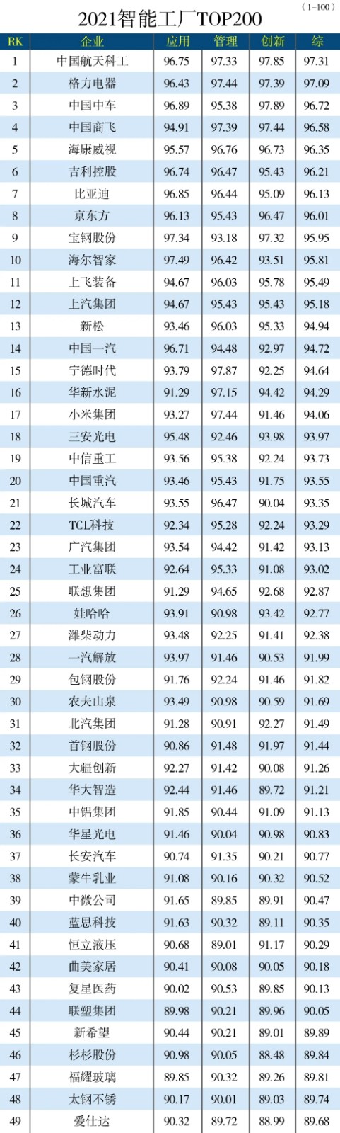 “2021中國智能工廠TOP200”排行榜發(fā)布 ?